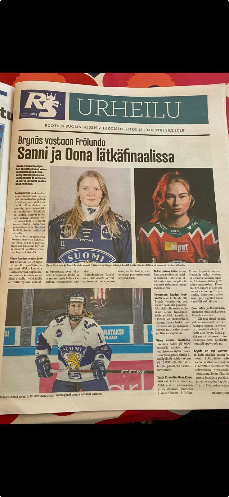 Oli mahtavaa olla seuraamassa Oonan finaaliottelua paikanpäällä Gävlessä Ruotsissa. Nousujohteinen kausi päättyi mestaruusjuhliin. Hienon finaalista teki myös sen, että molemmissa finaalijoukkueissa pelasi Kiekko-Nikkareiden kasvatteja. Frölundan joukkueessa pelasi Sanni Rantala, joka viime vuonna juhli Ruotsin mestaruutta.