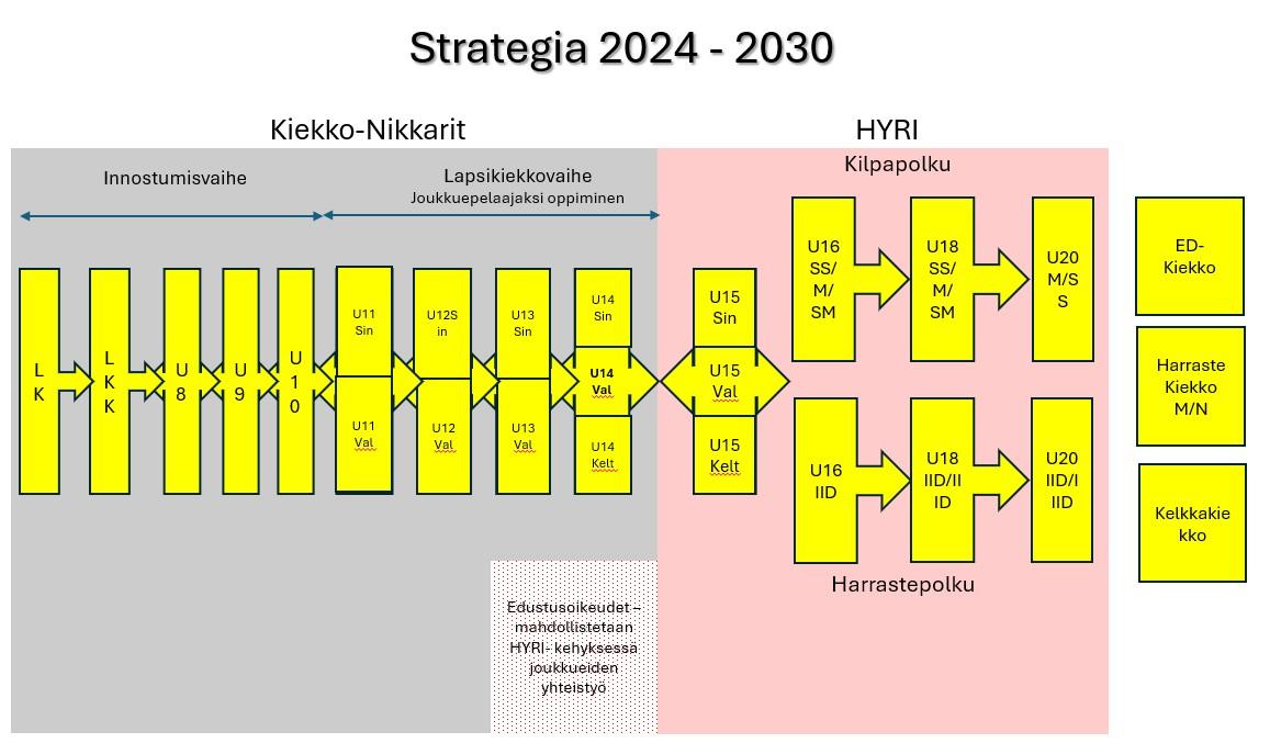Strategiassa korostetaan harrastuspolkujen vakiinnuttamista ja laajentamista kaudelle 2026–2027.